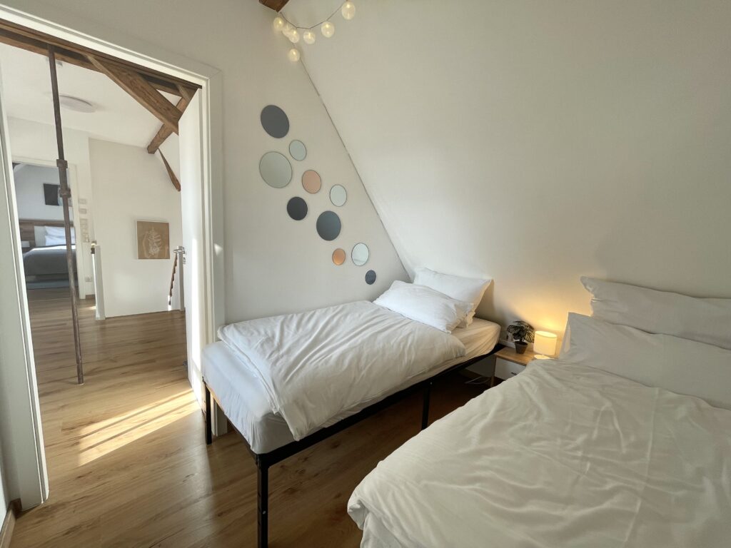 2 EinzelbettenEbenfalls im Obergeschoss befindet sich das 2. kleinere Schlafzimmer mit zwei Einzelbetten.
