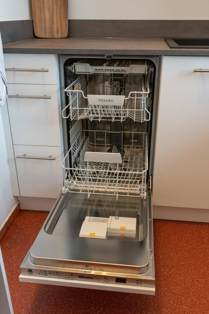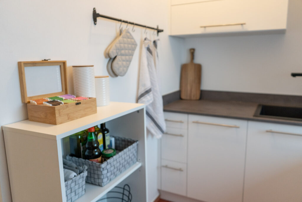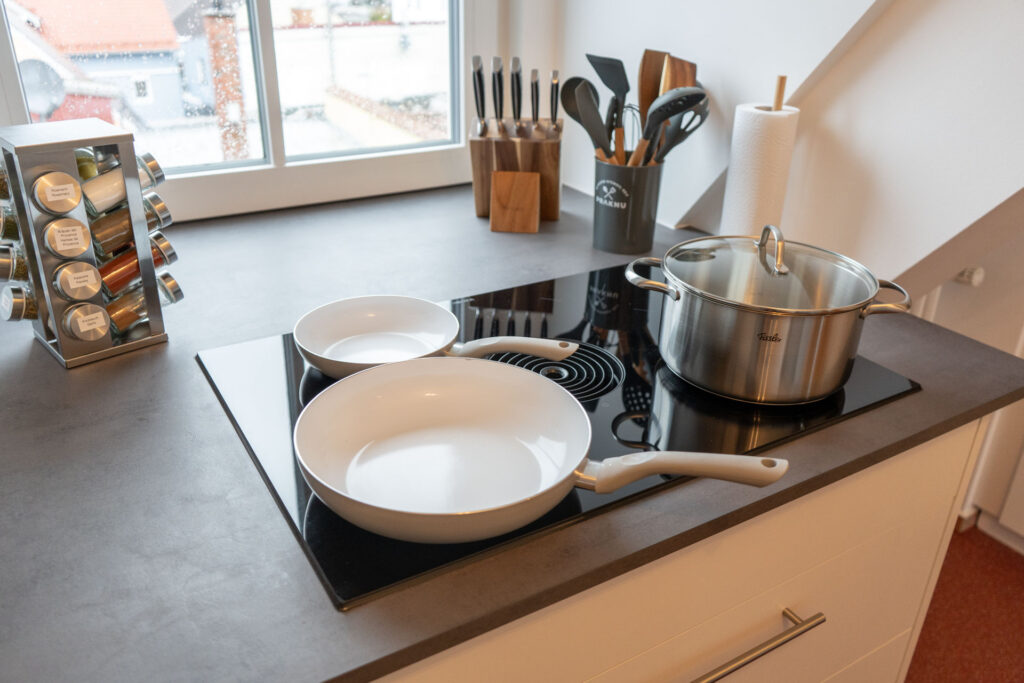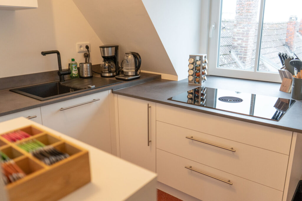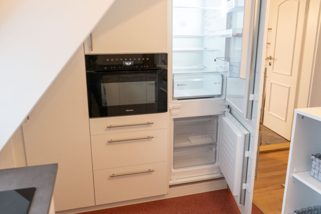 In der modernen Küche könnt ihr euch eure Lieblingsgerichte zaubern. Sie ist mit allen denkbaren Annehmlichkeiten ausgestattet, einschließlich Geschirrspülmaschine, Kaffeemaschine, Gefrierschrank, Backofen mit Mikrowellenfunktion, Induktionskochfeld mit BORA-Dunstabzug, Mixer, Toaster, Wasserkocher und vielem mehr. Es gibt kostenlosen Kaffee, Tee, Gewürze sowie einige Grundzutaten zu eurer freien Verfügung.