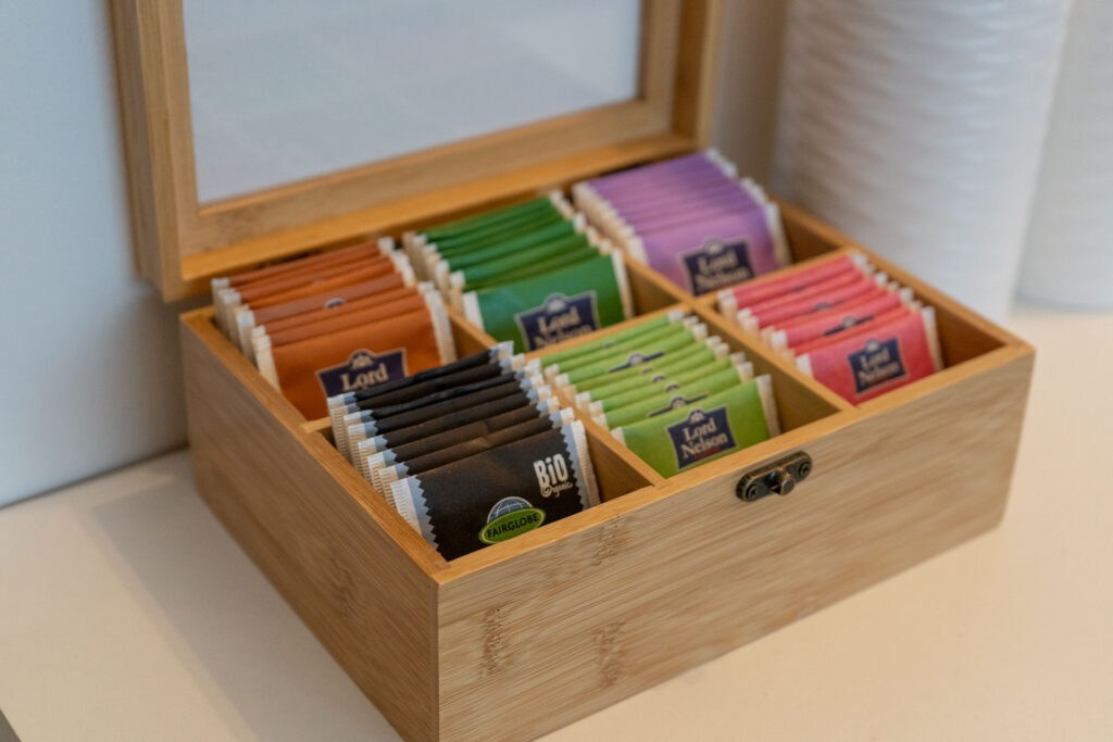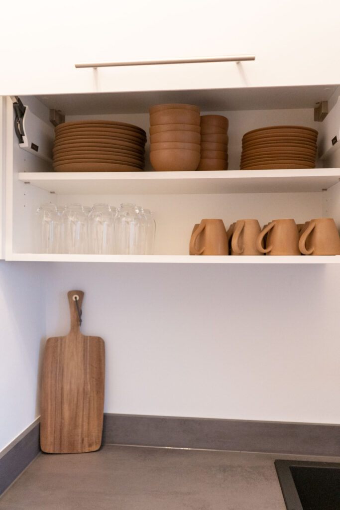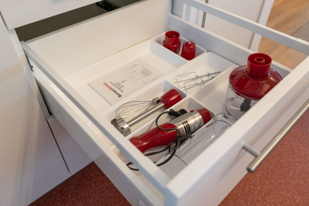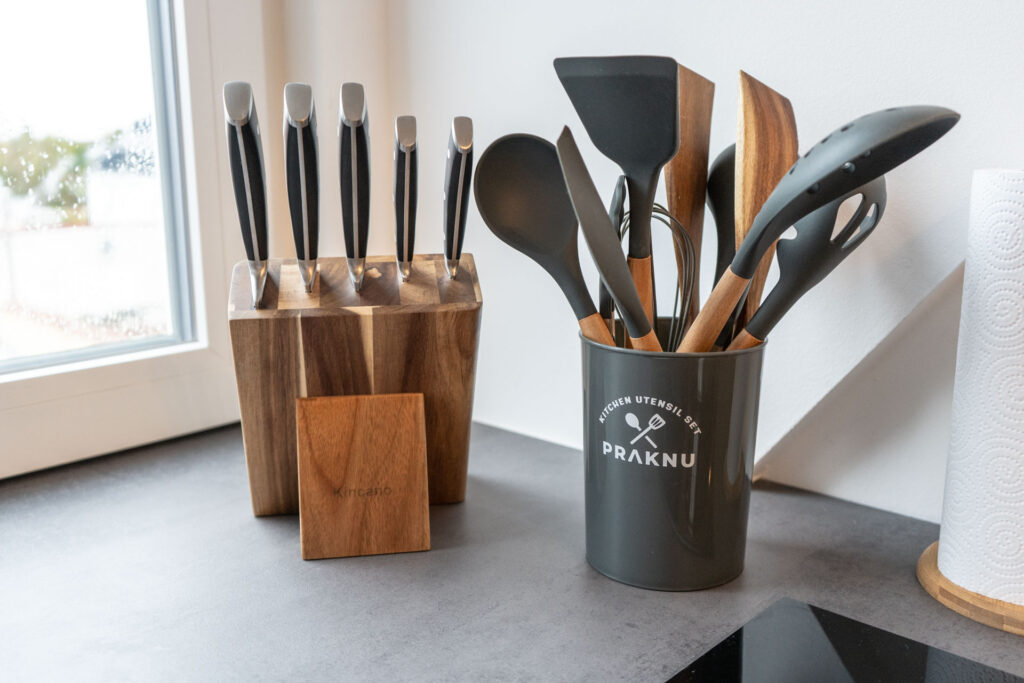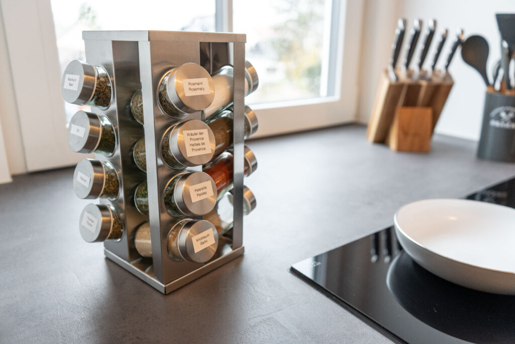 In der modernen Küche könnt ihr euch eure Lieblingsgerichte zaubern. Sie ist mit allen denkbaren Annehmlichkeiten ausgestattet, einschließlich Geschirrspülmaschine, Kaffeemaschine, Gefrierschrank, Backofen mit Mikrowellenfunktion, Induktionskochfeld mit BORA-Dunstabzug, Mixer, Toaster, Wasserkocher und vielem mehr. Es gibt kostenlosen Kaffee, Tee, Gewürze sowie einige Grundzutaten zu eurer freien Verfügung.