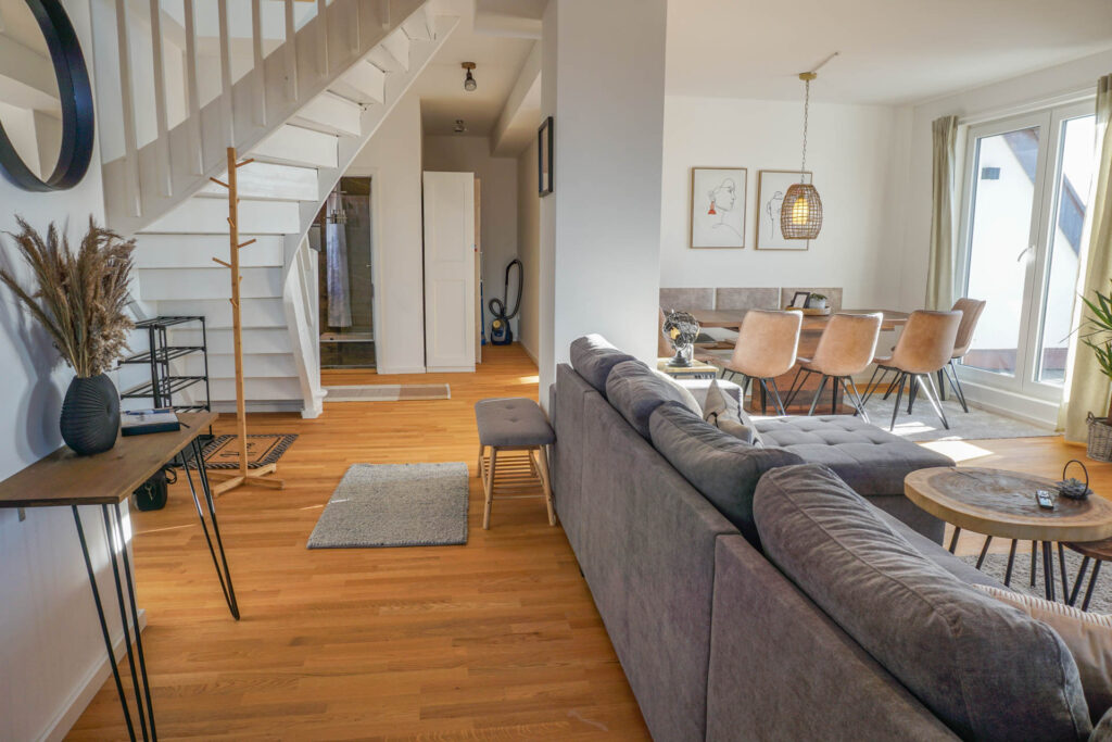 Plant einen unvergesslichen Aufenthalt mit bis zu 8 Personen in unserer wunderschönen und geräumigen Maisonette-Wohnung „Zugspitze“ im Herzen von Mering.